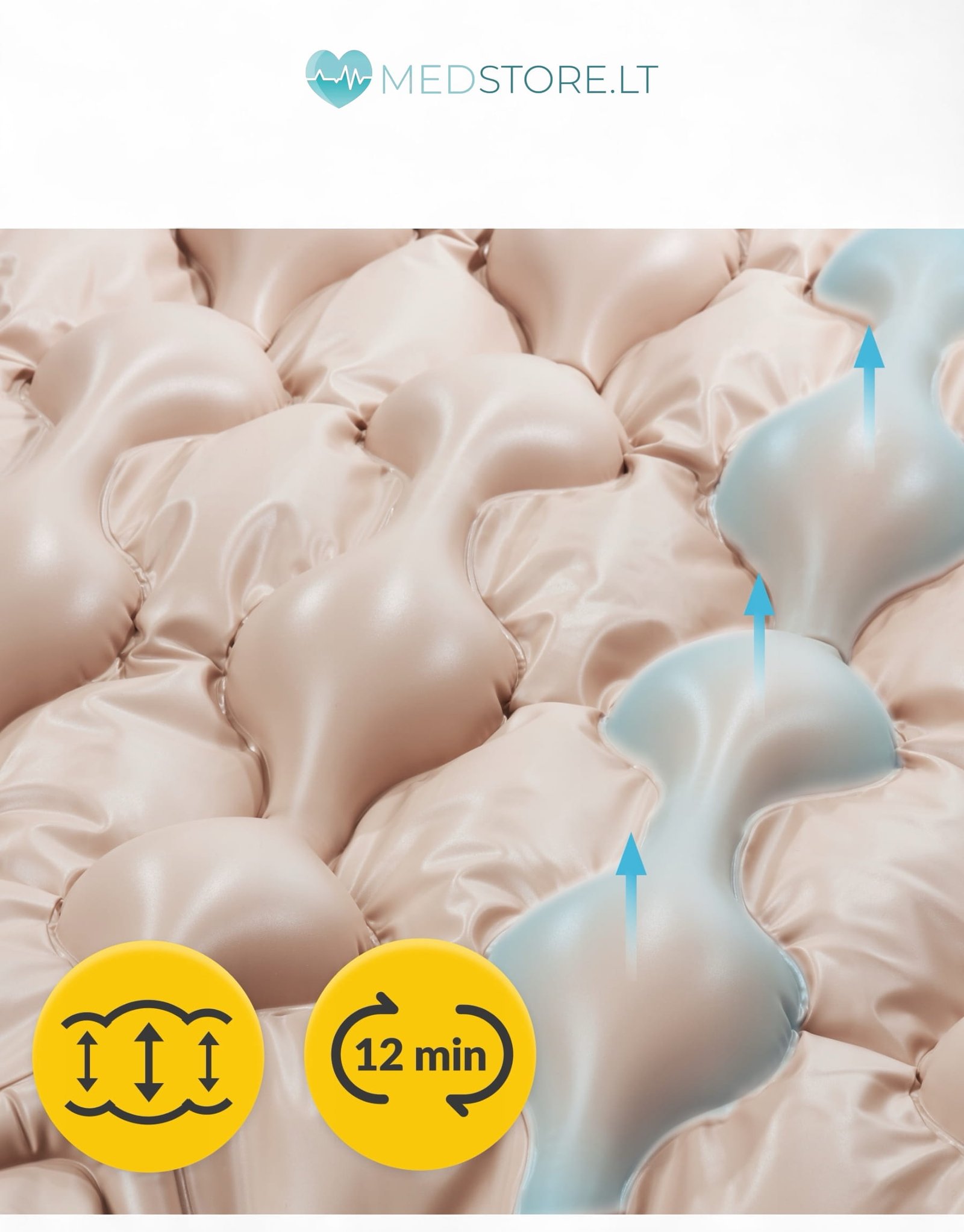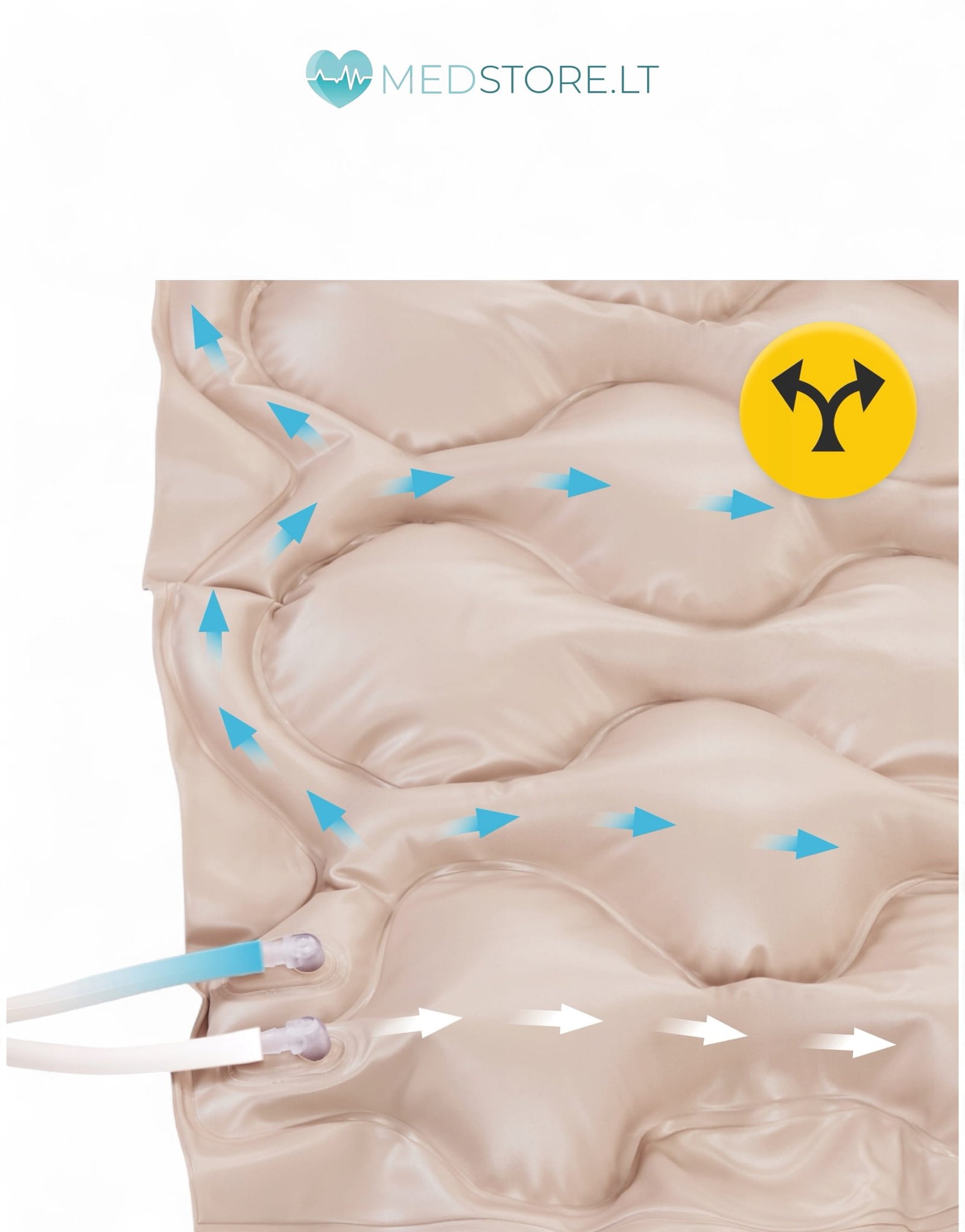 Čiužinys sudarytas iš daugybės oro kamerų, kurios pakaitomis prisipildo ir išleidžia orą. Tokiu būdu: