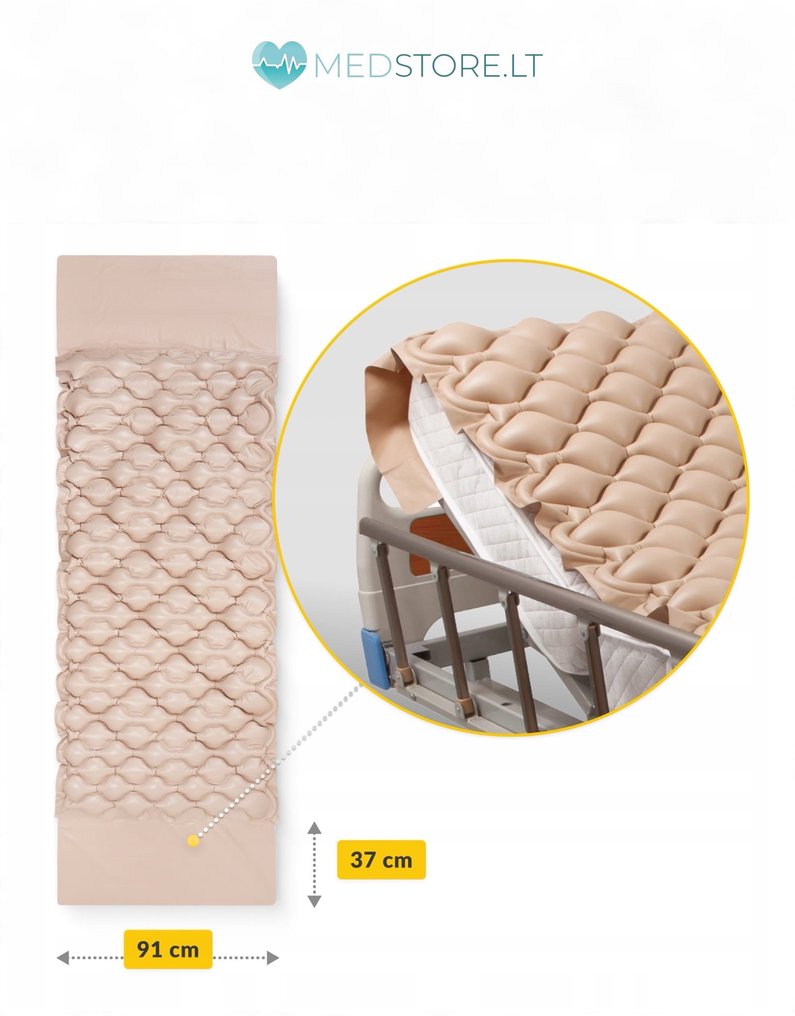 Čiužinys dedamas ant pagrindinio čiužinio ir prijungiamas prie kompresoriaus, kuris automatiškai reguliuoja oro slėgį.