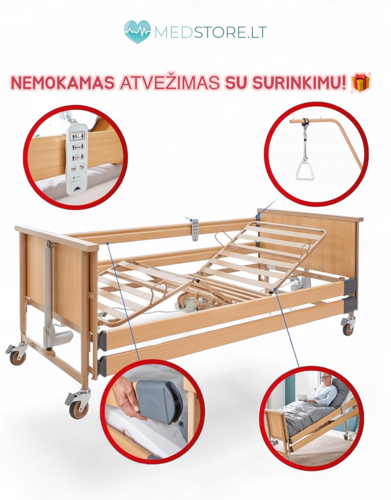Užsisakant naujas slaugos lovas per medstore.lt pristatymas, užnešimas, surinkimas ir apmokymas naudotis nemokamas.