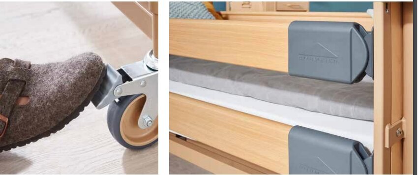 Ratukai turi stabdžius, todėl lovą galima saugiai užfiksuoti pasirinktoje pozicijoje. Tai užtikrina stabilumą ir saugumą pacientui.