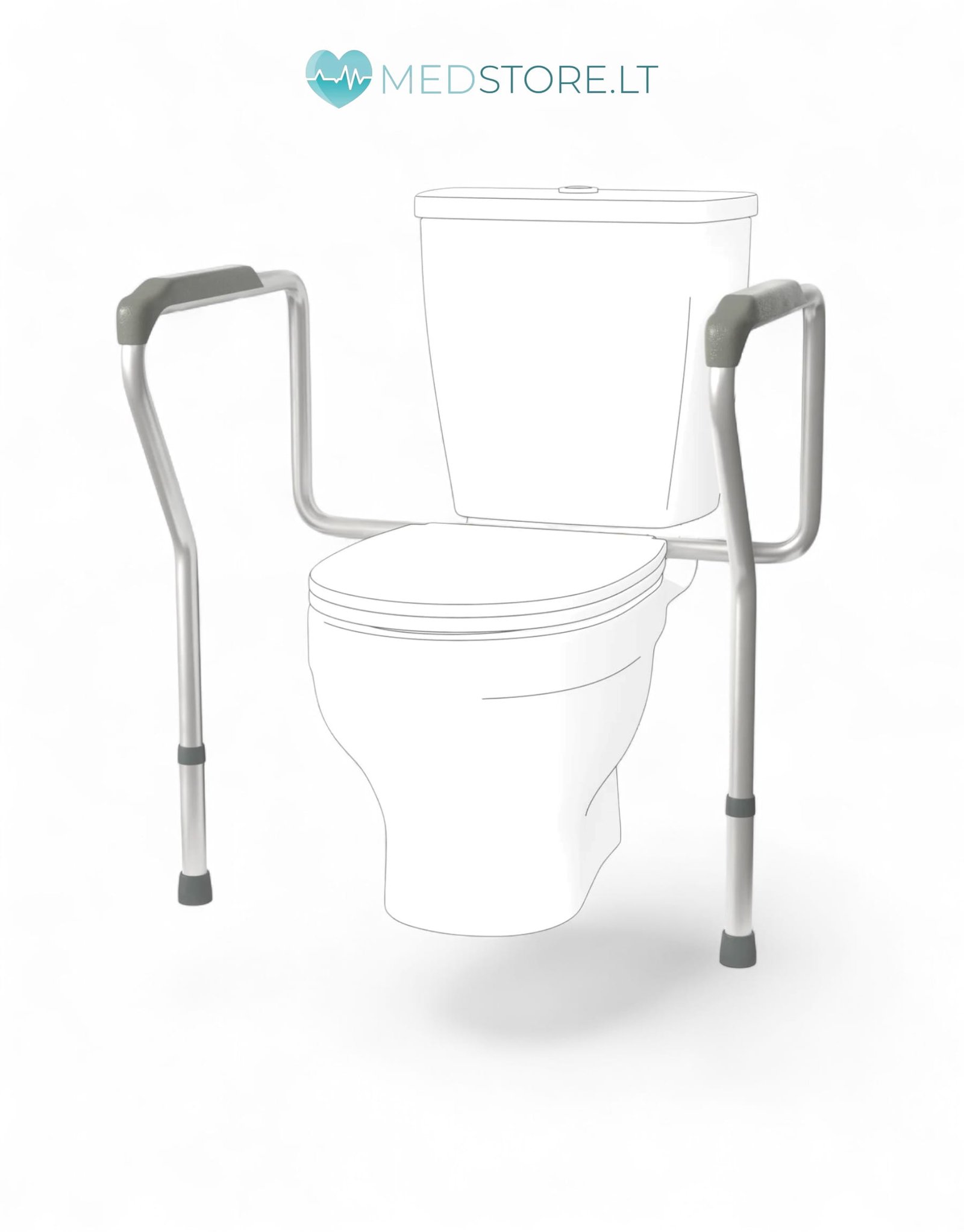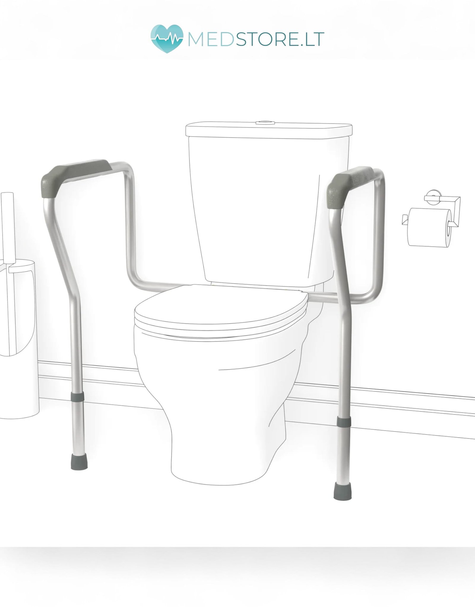 Laikiklis statomas aplink tualetą ir suteikia stabilias atramas iš abiejų pusių. Dėl reguliuojamo aukščio ir pločio jis lengvai pritaikomas prie individualių poreikių.